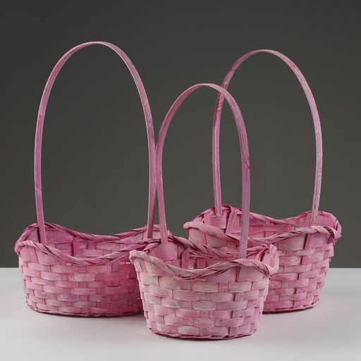 • Корзина плетёная для хранения Jute, бамбук, розовая, набор 3 шт.