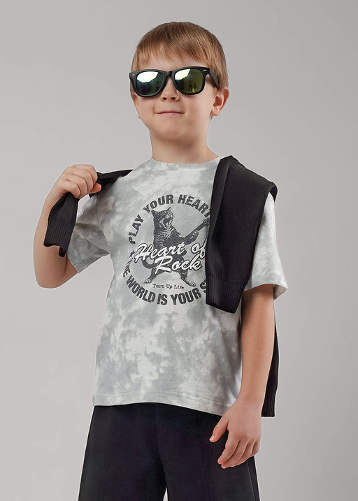 Хлопковая футболка с эффектом варки - стильная база любого гардероба. Эластичная горловина, комфортная посадка по фигуре, стильный и дерзкий принт спереди. Сочетай модель с любимыми брюками или шортами и будь в тренде! 100% Хлопок