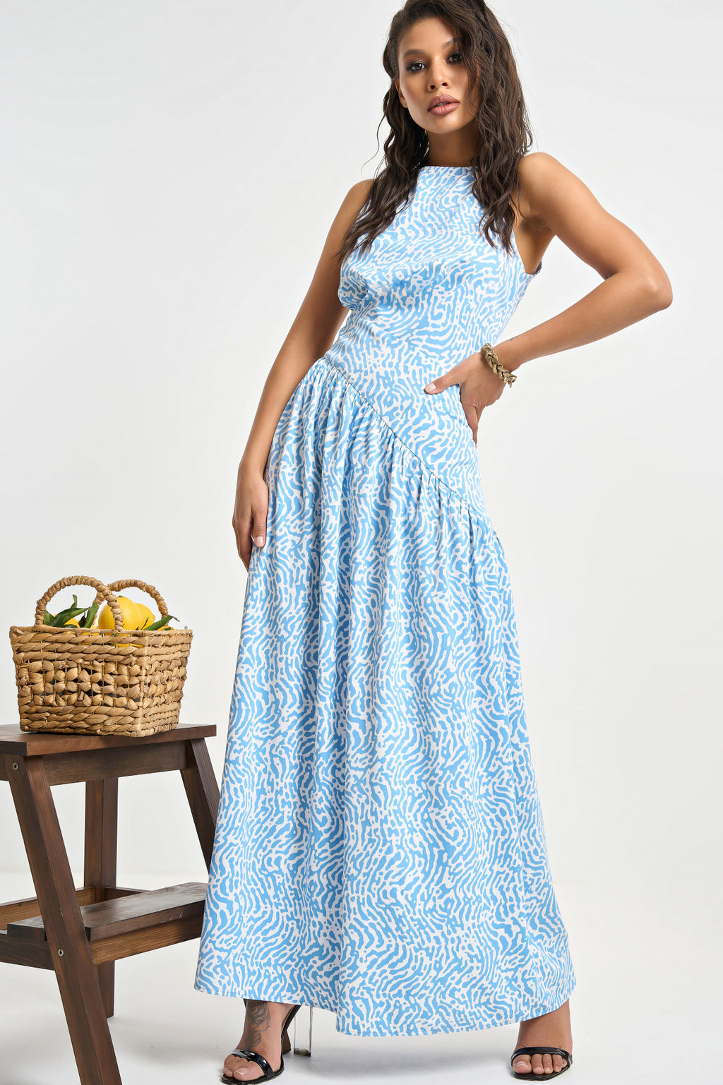 Платье облегающее бело-голубое