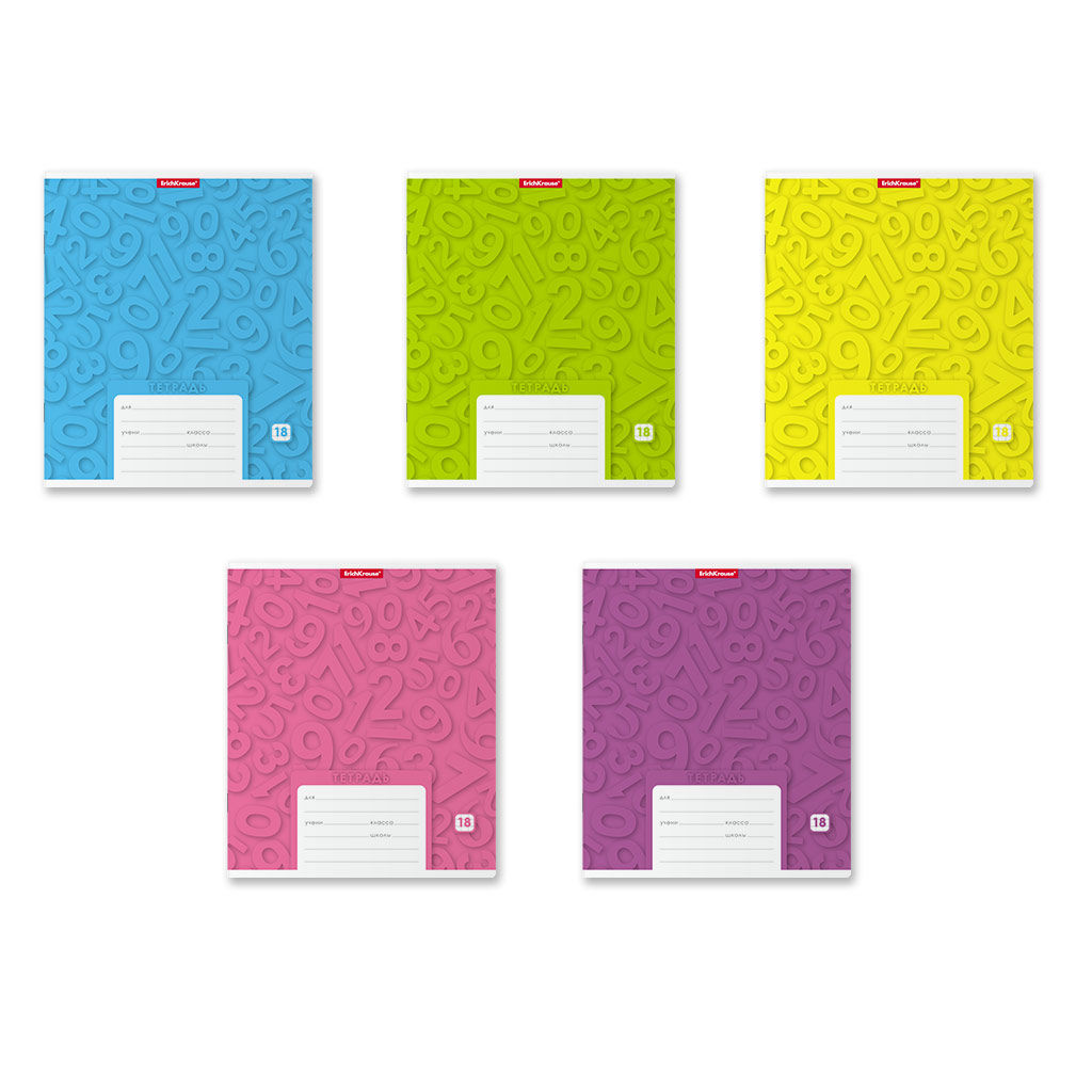 • АКЦИЯ Цена за 200 шт. Тетрадь школьная ученическая ErichKrause Optima Numbers ассорти, 18 листов, клетка (в плёнке по 10 шт.)