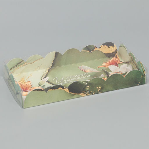 Цена за 5 шт. Коробка для печенья, кондитерская упаковка с PVC крышкой, «Лучшему учителю», 21 х 10.5 х 3 см