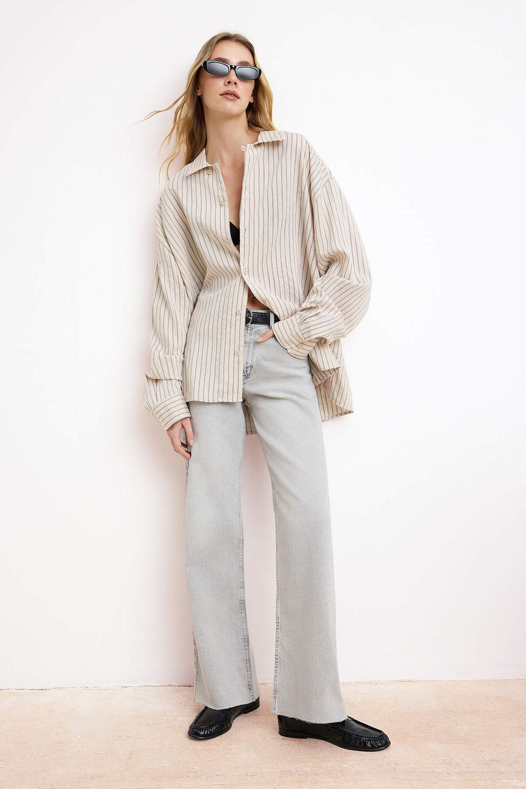 Gri Normal Bel Az Esnek Wide Leg Uzun Boy Jeans TWOSS26JE00119