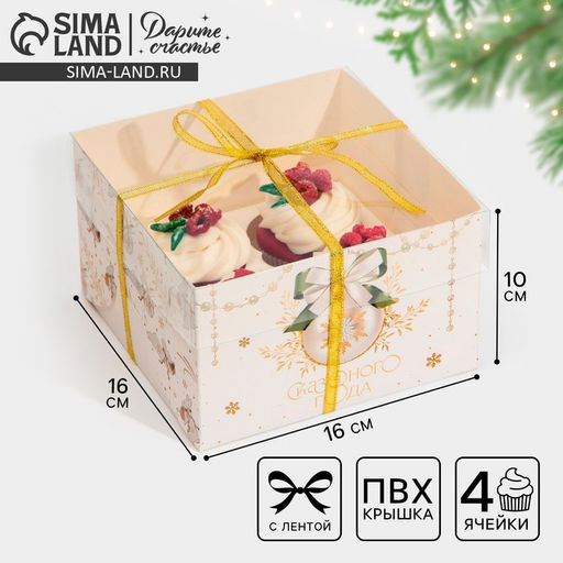 Цена за 5 шт. Коробка для капкейка «Бело-золотой Новый год », 16×16×10 см