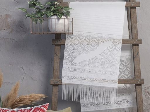Артикул: К8 РУШНИК Тип ткани: Гардинное полотно Состав: 100% Полиэфир Цвет: Белый Применение: Кухня - Столовая, Пасха, Свадьба Производитель: Беларусь Характер рисунка: Животный мир, Орнамент Оттенок цвета: Белый Упаковка: пакет пвх Тип изделия: Рушник Размер рушника, см: 50*215 Вид оформления: Белая