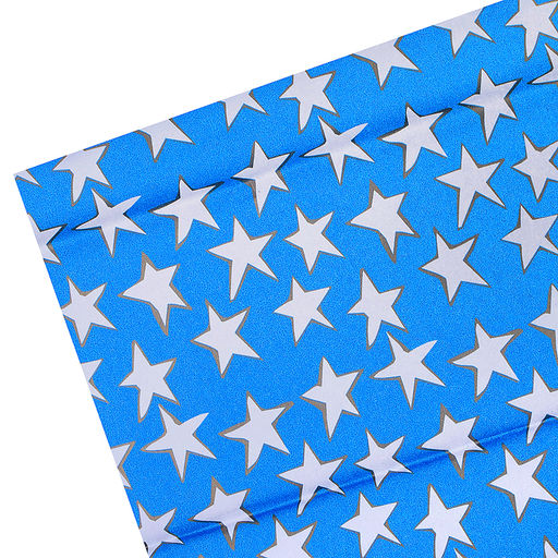 Бумага тишью c орнаментом "Белые звезды на синем фоне" 50x70 см, 17 г/м², 5 л, пластиковый пакет с европодвесом