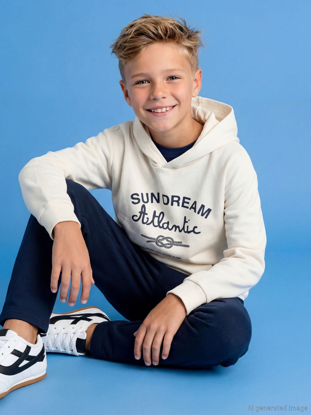 Kap??onlu Bask?l? Erkek ?ocuk Sweatshirt