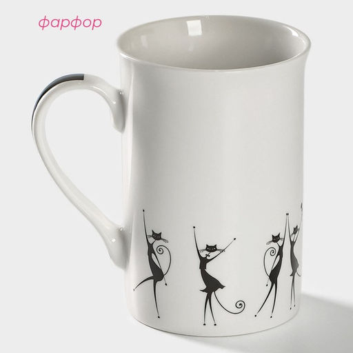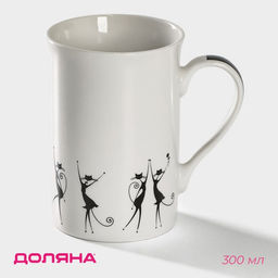 Кружка Доляна «Чёрные кошечки», 300 мл, фарфор, белая