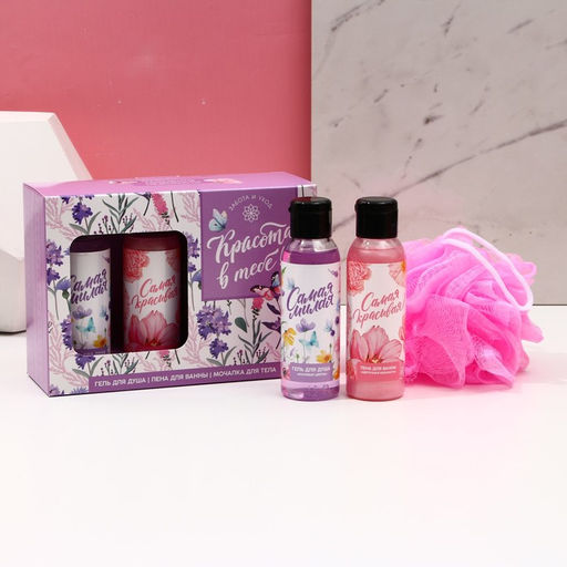 • Подарочный набор «Красота в тебе», гель для душа и пена для ванны 2×100 мл, мочалка для тела, Чистое счастье