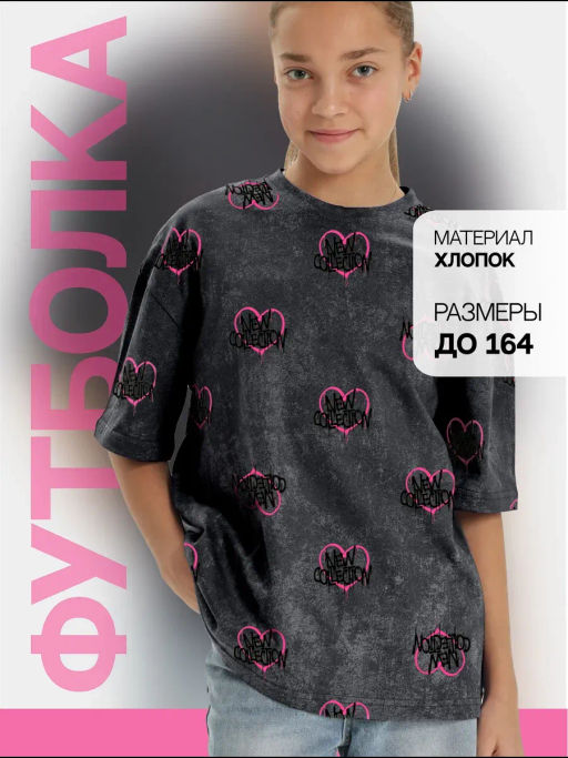 Стильная футболка - хлопок 100 %, во время подвижных игр можно вовсю бегать наперегонки на школьном дворе или играть на детской площадке. Ребенок получит комфорт на весь день!  В ней можно провести целый учебный день, а после пойти играть на детскую площадку будет удобно все время. А крой оверсайз и спущенные рукава дают дополнительную свободу для движений. Стильный принт поднимет настроение даже в пасмурный день. Рисунок нанесен по современной технологии, поэтому он не трескается и не деформируется при стирке.­