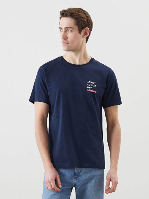 Bisiklet Yaka Bask?l? Penye Erkek Ti??rt