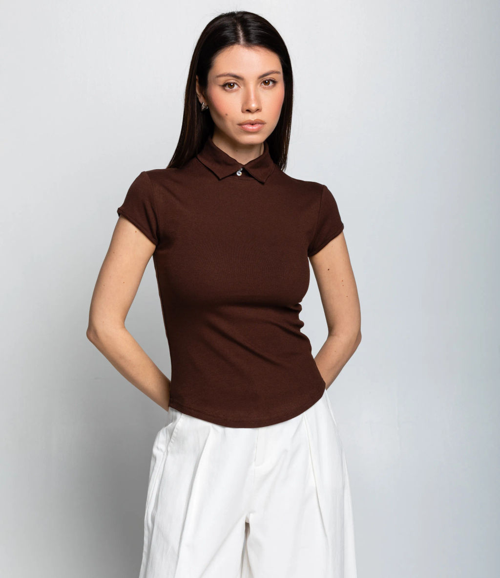Эта футболка прекрасный выбор для вашего магазина, предлагая стильный и универсальный дизайн, который станет отличным дополнением к гардеробу ваших клиентов. Футболка приталенного кроя с коротким рукавом и воротником-стойкой, застёгивающимся на две пуговицы. Ткань плотная, слегка тянется, плотно облегает фигуру, подчёркивая силуэт. Фасон лаконичный, без лишних деталей акцент только на аккуратном воротнике. Длина чуть выше талии, рукава заканчиваются у локтя. Модель сочетает строгость и комфорт, подходит для делового и повседневного стиля. Выполненная из 65% хлопок, 30% полиэстера и 5% эластана, футболка обеспечивает отличное качество и приятные тактильные ощущения. Независимо от сезона, она станет любимым элементом в гардеробе ваших клиентов. На странице сайта доступна таблица размеров, что позволит вашим покупателям легко найти подходящий вариант. Установленная цена делает эту футболку доступной для широкой аудитории, что обеспечит вам высокий уровень продаж. -- Характеристики -- Цвет: коричневый Пол: Женский Страна производитель: Китай Сезон: Всесезонный Материал: Хлопок, Эластан, Полиэстер