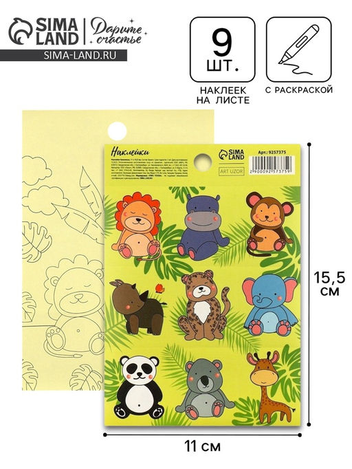 Для кого: Унисекс. Тематика: Природа. Тематика: Животный мир. Тематика: Мультфильмы. Тематика: Детская. Тематика праздника: Универсальная тематика. Тематика праздника: День защиты детей. Возраст: Детский. Вид наклейки: С раскраской на обороте. Вид раскраски: Раскраски-наклейки. Изображение: Животные. Бесплатная доставка: Да. Наша разработка: Да. Размеры товара: 15/0.1/11.