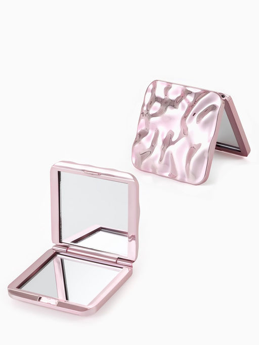 Зеркало складное квадрат (2) с/увел ВОЛНЫ 7,5см пластик розовый пакет QF
