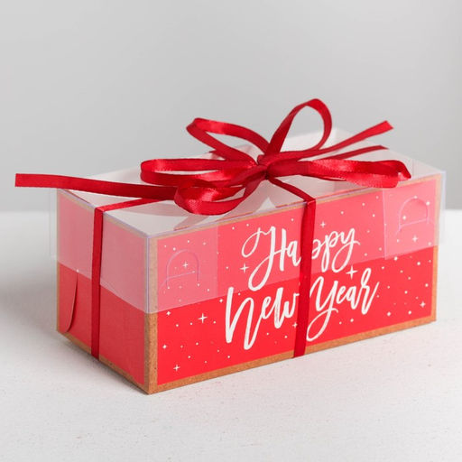 Цена за 5 шт. Коробка для капкейка Happy new year, Новый год, 16×8×7.5 см
