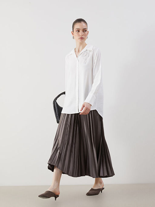 • Beli Lastikli ?ifon Kad?n Pileli Etek