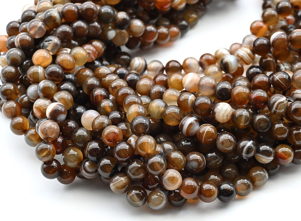 Бусины из агата кофейного шарик 8мм, 37см, 46 бусин Радуга камня