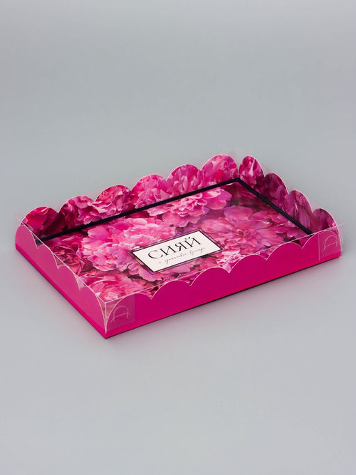 Прочный картон обеспечивает надежную защиту содержимого, а прозрачная крышка позволяет сразу оценить внешний вид угощений без необходимости открывать коробку.