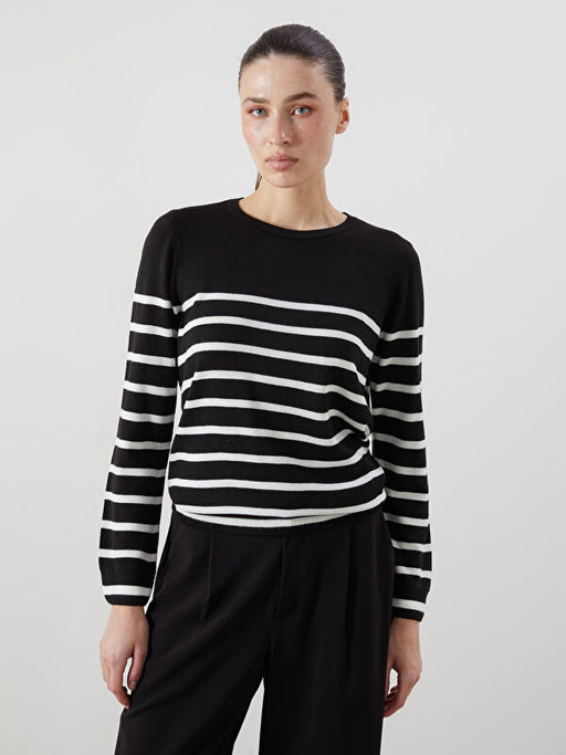Bisiklet Yaka ?izgili Kad?n Triko Kazak