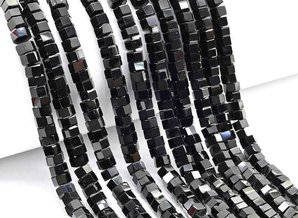 • Бусины из агата черного диски с гранями 6*4мм, 38см, 110 бусин Радуга камня