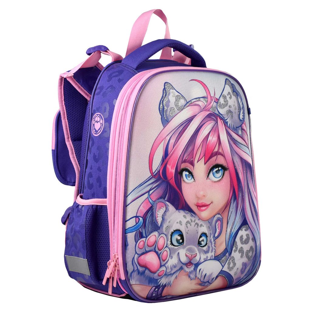 Ранец школьный Феникс+ арт.62991/ 4 ДЕВУШКА С БАРСОМ (27х37х13 см, полиэстер, ЭВА-панель, сублимацио