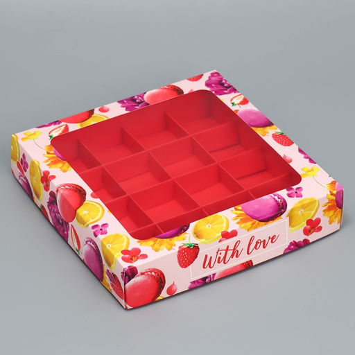 • Цена за 5 шт. Коробка для конфет, кондитерская упаковка, 16 ячеек With love, 18.9×18.9×3.8 см