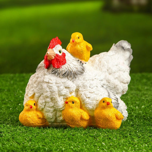 • Садовая фигура "Курица белая с цыплятами" 21х16х14см
