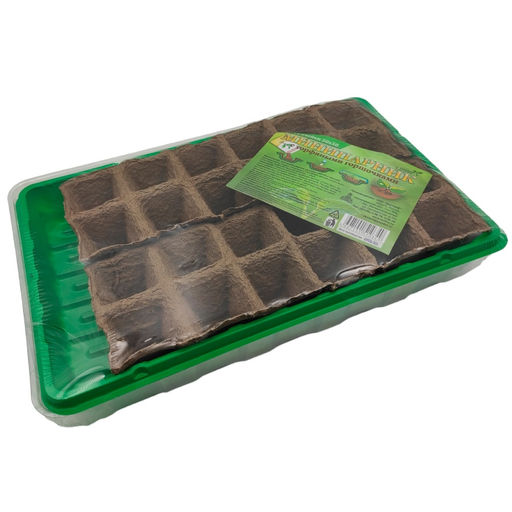 • Мини-парник для рассады с торф.горш. 36х23х5см с крышкой (24 торф.горш.50х50х50мм, лоток полистирол)