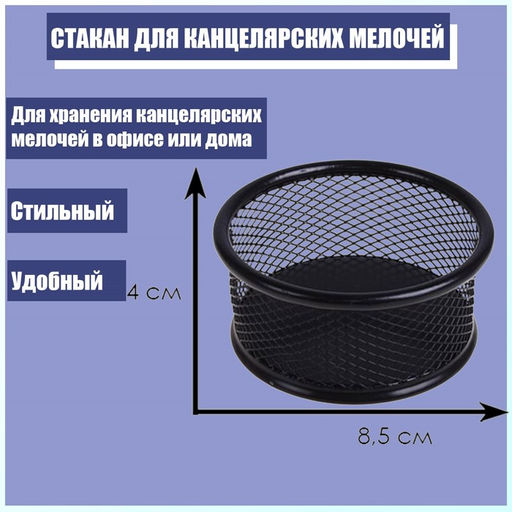 • Цена за 2 шт. Стакан для канцелярских мелочей, чёрная сетка