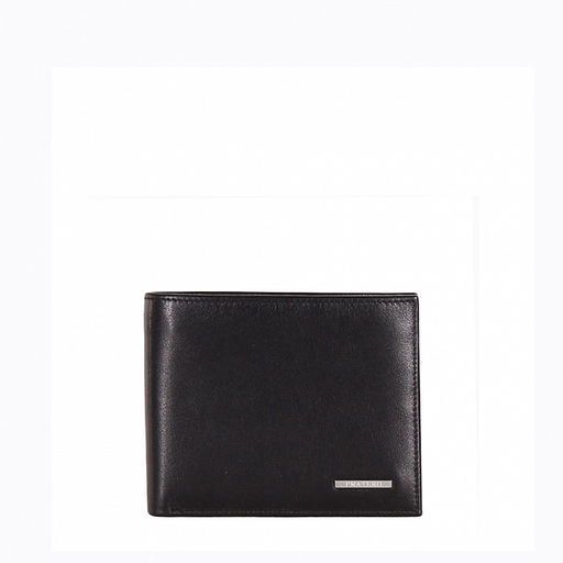 Мужской кошелек, выполнен из натуральной кожи. Складывается пополам, застегивается на магнитную кнопку. Дополнен серебристой фурнитурой.