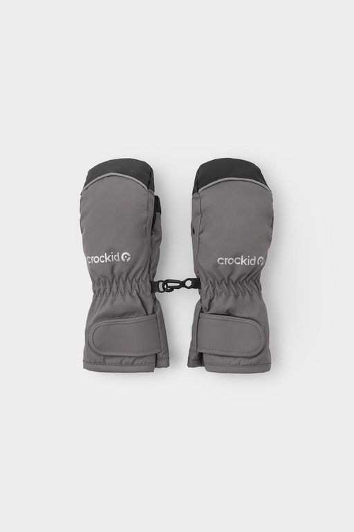 Детские утеплённые рукавицы из однотонной мембранной ткани со вставками из искусственной кожи. Удлинённые манжеты на молнии. Мягкий подклад из флиса. Пластиковый карабин для скрепления рукавиц между собой. Светоотражающие элементы.. Состав: верх: 80% нейлон, 20% полиуретан; подклад: 100% полиэстер; утеплитель: 100% полиэстер