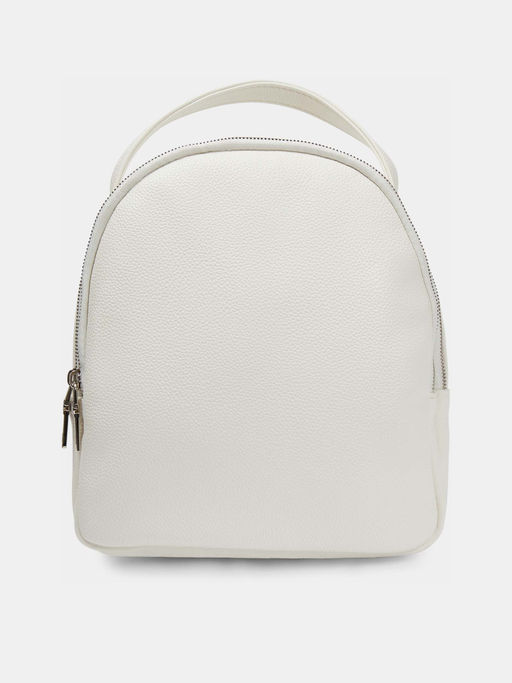 Рюкзак женский городской из искусственной кожи с зернистой фактурой. Плоское внутреннее пространство разделено на три отделения на молниях, все вещи будут на своих местах. Носить удобно в руках, на плече или за спиной на двух лямках. Минималистичный дизайн и мягкие линии формы делают модель женственной. Рюкзак белый женский дополнит повседневные образы в стиле casual.