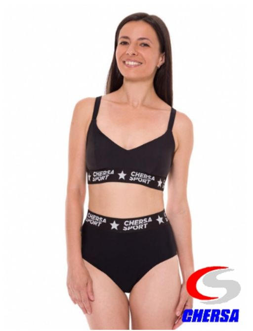 Плавки с высокой посадкой, спереди на подкладке. Декорированы широкой резинкой с фирменным логотипом. Предназначены для занятий плаванием, фитнесом, йогой и другими видами спорта.