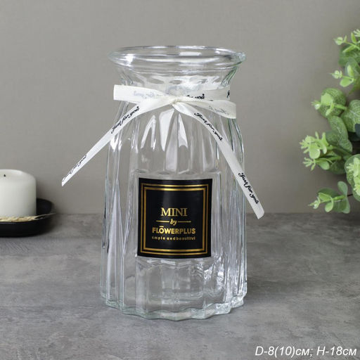 • Ваза для цветов 18 см прозрачная с лентой этикетка / WRD-141 /уп 30/ без и/уп