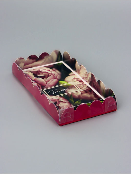 Прочный картон обеспечивает надежную защиту содержимого, а прозрачная крышка позволяет сразу оценить внешний вид угощений без необходимости открывать коробку.