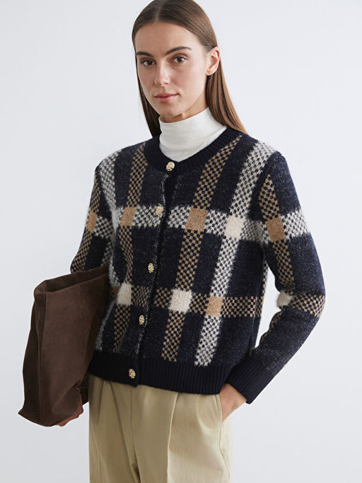 Bisiklet Yaka Ekose Kad?n Triko H?rka