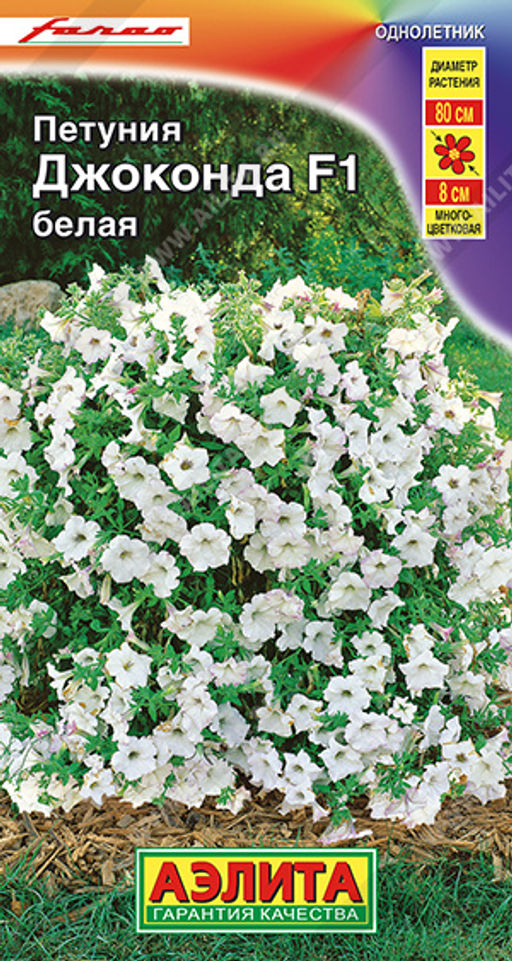 Петуния итальянской селекции компании Farao с непревзойденными характеристиками. Благодаря гену мужской стерильности она дает ошеломляющее количество цветков и непрерывно цветет с весны до поздней осени. Адаптируется к широкому диапазону температур успешно выдерживает кратковременные заморозки до 5С и экстремальную жару. Гибрид формирует мощные кусты высотой 25-30 см с интенсивным ветвлением. В ширину они достигают 60-80 см, но при регулярных подкормках вырастают значительно большего размера. Цветки ? 7-8 см, не травмируются дождями и сильным ветром. Петуния серии Джоконда является серьезной конкуренткой сурфиниям, которые могут размножаться только вегетативно. Украсит собой клумбы, рабатки, подвесные корзины и садовые вазы.