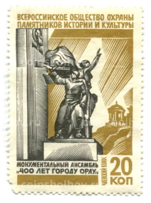 Марка Всероссийское общество охраны памятников истории и культуры монументальный ансамбль 400 лет городу Орлу
