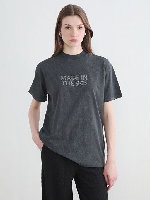 Bisiklet Yaka Ta?l? Kad?n Ti??rt