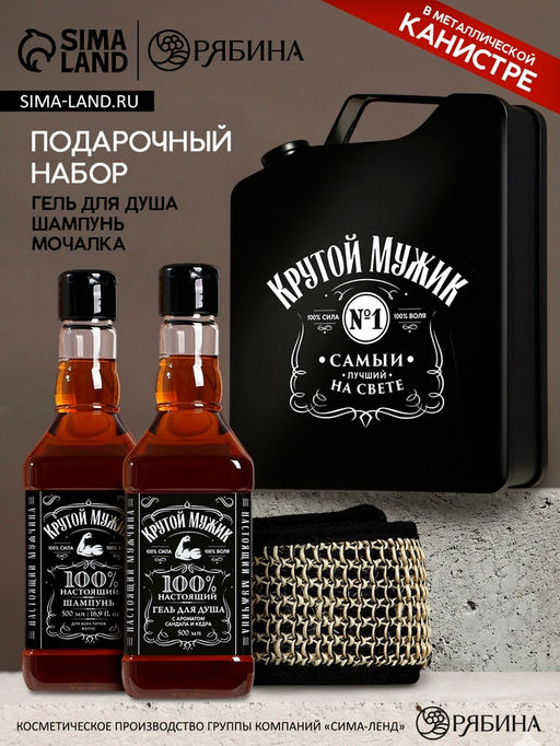 • Подарочный набор Крутой мужик, гель для душа во флаконе виски, шампунь и мочалка лента, Чистое счастье
