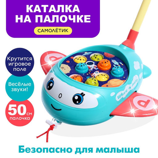 • Каталка на палке «Световой самолётик», световые и звуковые эффекты, цвета МИКС