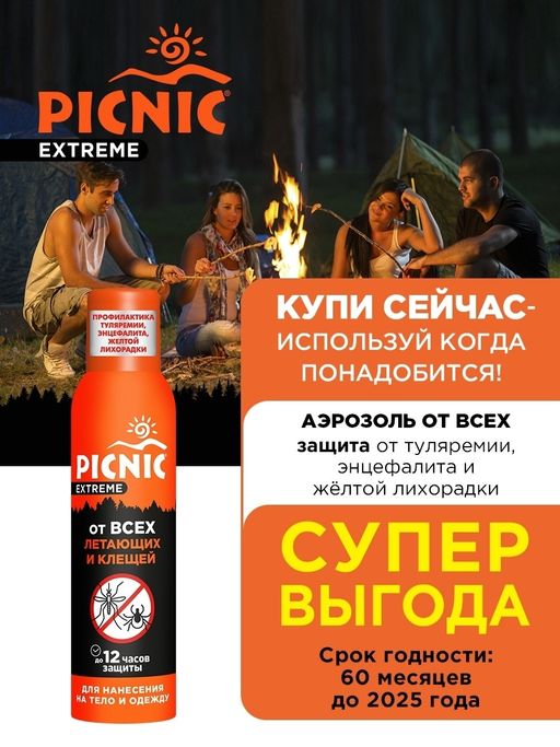 PICNIC EXTREME аэрозоль от всех видов лет.насекомых и клещей 150см3