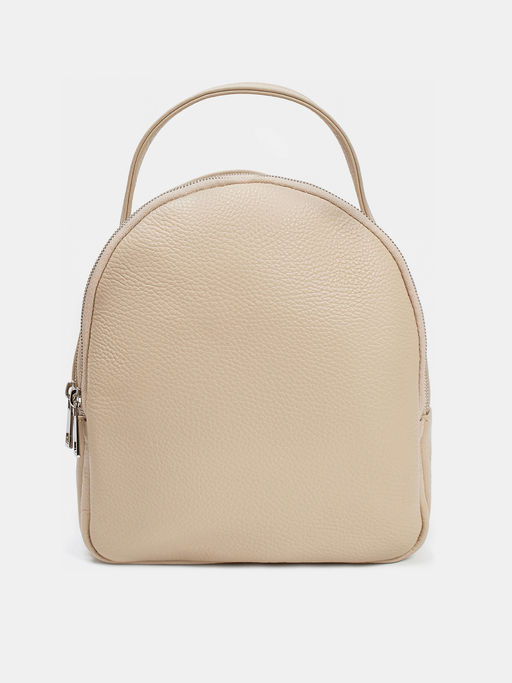 Рюкзак женский городской из натуральной кожи с зернистой фактурой. Плоское внутреннее пространство разделено на три отделения на молниях, все вещи будут на своих местах. Носить удобно в руках, на плече или за спиной на двух лямках. Минималистичный дизайн и мягкие линии формы делают модель женственной. Рюкзак бежевый женский дополнит повседневные образы в стиле casual.