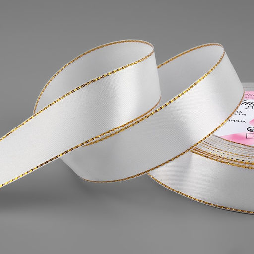• Цена за 2 шт. Лента атласная, с золотым люрексом, 25 мм, 23±1 м, белая №001