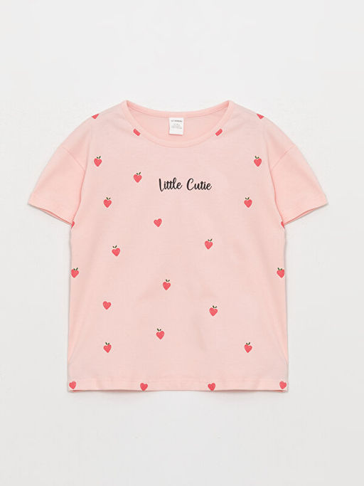 Bisiklet Yaka Bask?l? K?sa Kollu K?z Bebek Ti??rt