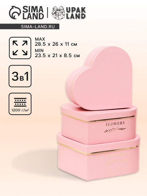Практичность праздничной упаковки: Набор из трех коробок-сердец избавляет от необходимости подбирать упаковку отдельно для каждого подарка. Увеличенные габариты вмещают объемные презенты, а нежный цвет создает целостное впечатление. Такой подход экономит время и добавляет гармонии в подготовке к празднику.