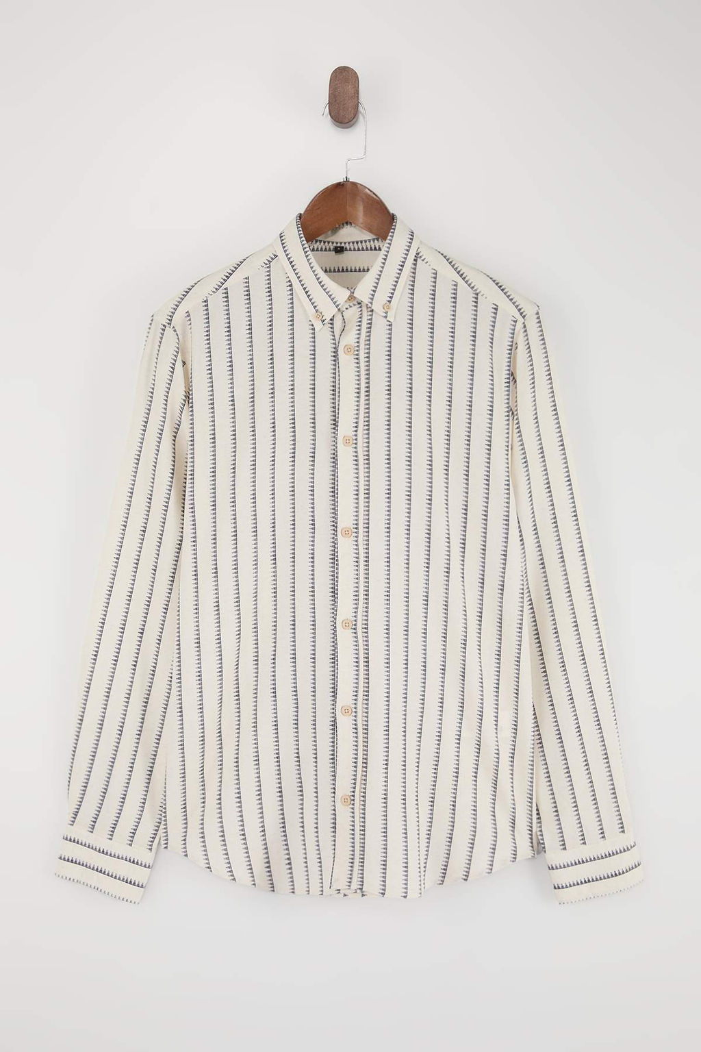Ekru Keten Kar?s?ml? Salas Dokumlu Gomlek TMNSS25GO00059
