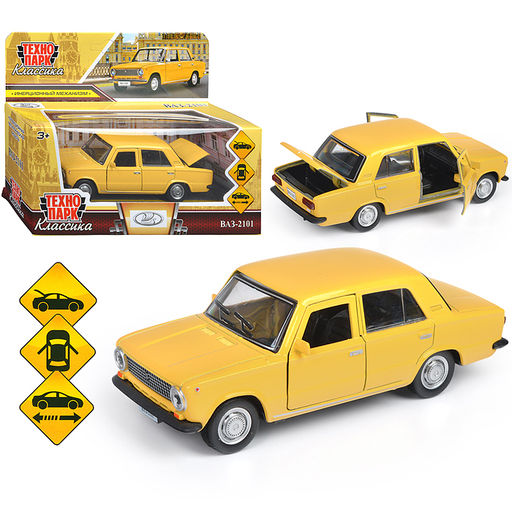 • Машина металл ВАЗ-2101 12 см, (двери, багаж, желтый) инерц, в коробке