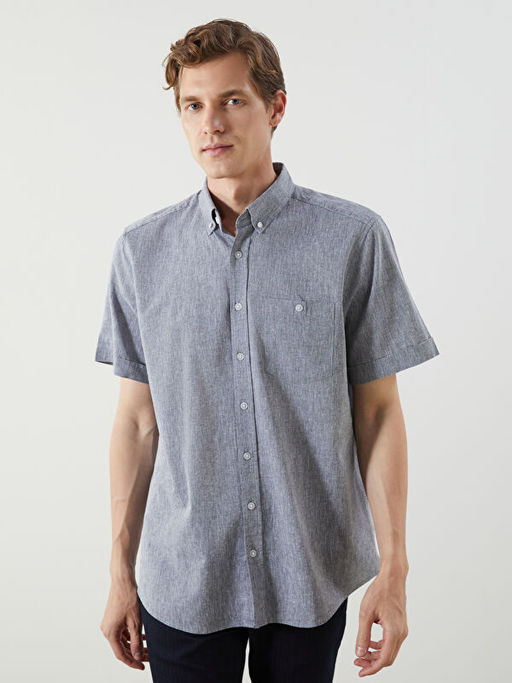 • Regular Fit Keten Kar???ml? Erkek G?mlek