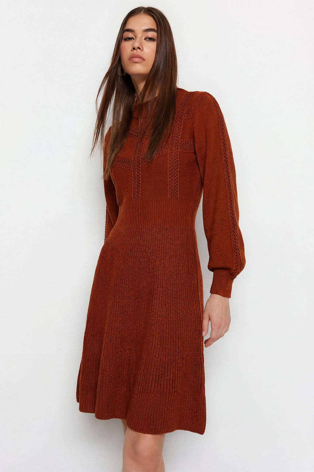 Kiremit Mini Triko Dantelli Elbise TWOAW22EL0011