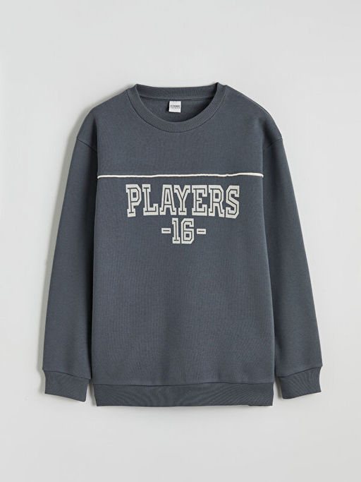 Bask?l? Erkek ?ocuk Kal?n Sweatshirt